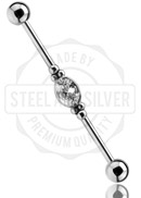 ROSE GOLD PVD SS316L INDUSTRIAL CRYSTAL BARBELLS SET W. OVAL CUBIC ZIRCONIA