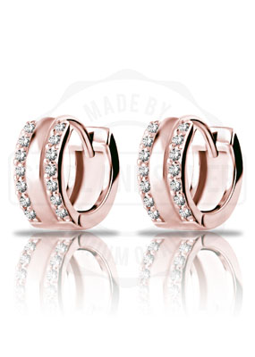 ROSE GOLD PVD HUGGIES HOOPS (10MM) W. 2 ROWS PAVE SET CUBIC ZIRCONIA