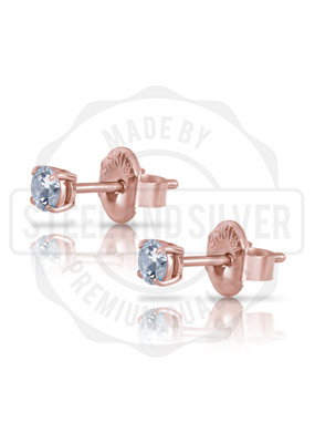 SS316L EARSTUDS SET W. 3MM ROUND PREMIUM ZIRCONIA,RG PVD COSTED