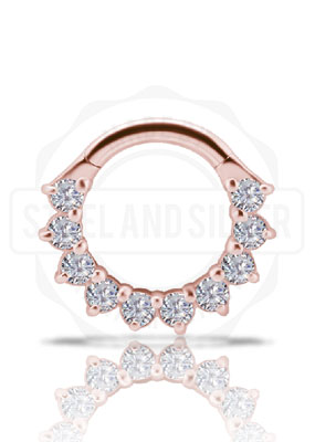 18K ROSE GOLD HINGED SEPTUM & DAITH CLICKER SET W. LAB CREATED DIAMONDS