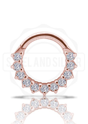 18K ROSE GOLD HINGED SEPTUM & DAITH CLICKER SET W. LAB CREATED DIAMONDS
