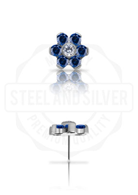 TITANIUM THREADLESS MICRO FLOWER ATT. SET W. LAB CREATED GEMSTONE