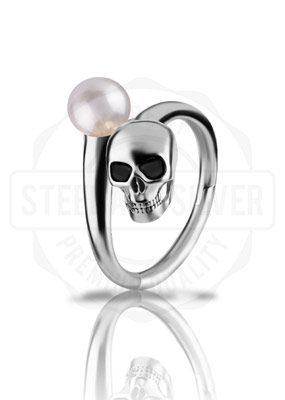 18K WHITE GOLD HINGED SEGMENT SKULL CLICKER W. FRESH WATER PEARL