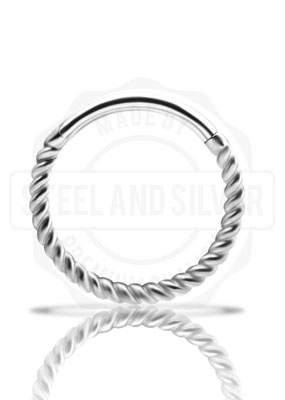 18K WHITE GOLD TWISTED ROPE DESIGN HINGED CONCH RING