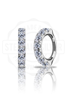 18K WHITE GOLD HINGED SEGMENT MICRO PAVEE CLICKER SET W. PREMIUM ZIRCONIA