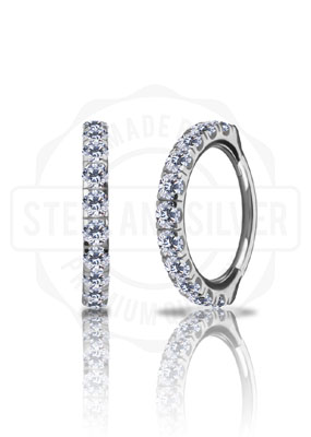18K WHITE GOLD HINGED SEGMENT MICRO PAVEE CLICKER SET W. PREMIUM ZIRCONIA
