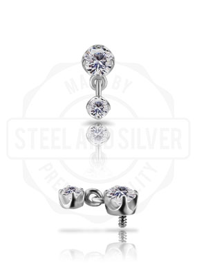 18K WHITE GOLD INTERNAL ATTACHMENT W. DANGLE SET W. PREMIUM ZIRCONIA