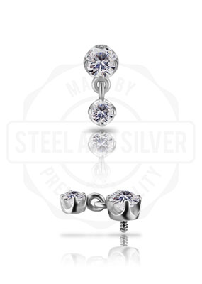 18K WHITE GOLD INTERNAL ATTACHMENT W. DANGLE SET W. PREMIUM ZIRCONIA