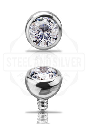 18K WHITE GOLD BALL INTERNALLY THREADED SET W. PREMIUM ZIRCONIA