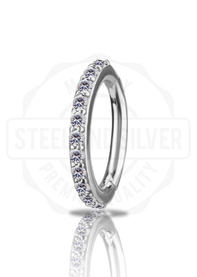 18K WHITE GOLD OVAL BELLY CLICKER SET W. PREMIUM ZIRCONIA