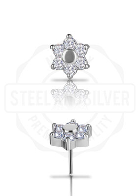 18K WHITE GOLD THREADLESS FLOWER ATTACHMENT SET W. LAB CREATED DIAMONDS