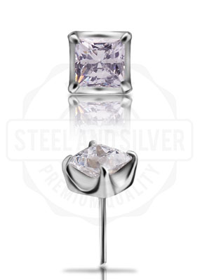 18K WHITE GOLD THREADLESS ATT. SET W. PRINCESS CUT PREMIUM ZIRCONIA